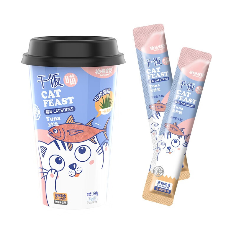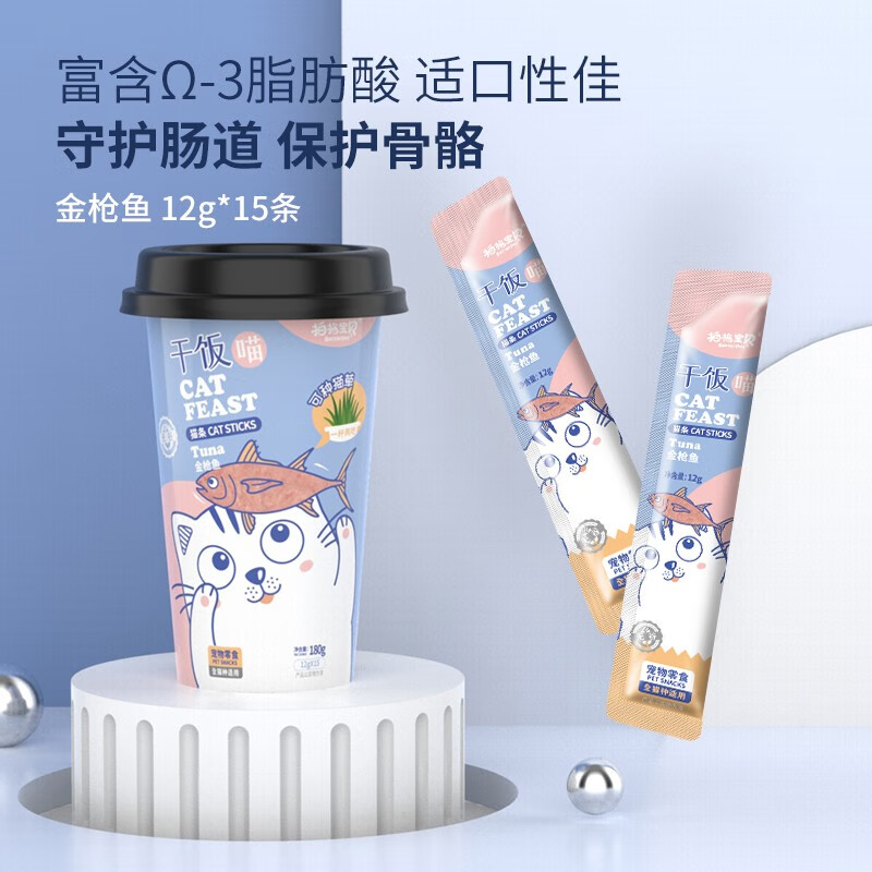 拍拖宝贝干饭喵猫条肉泥零食成幼猫咪流质营养增肥发腮鲜湿粮 金枪鱼12g*15