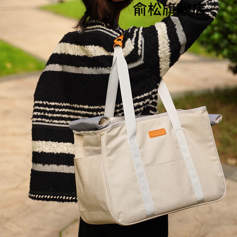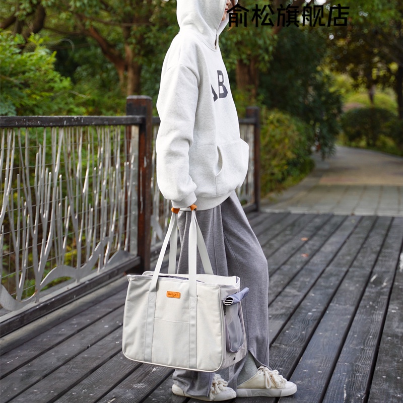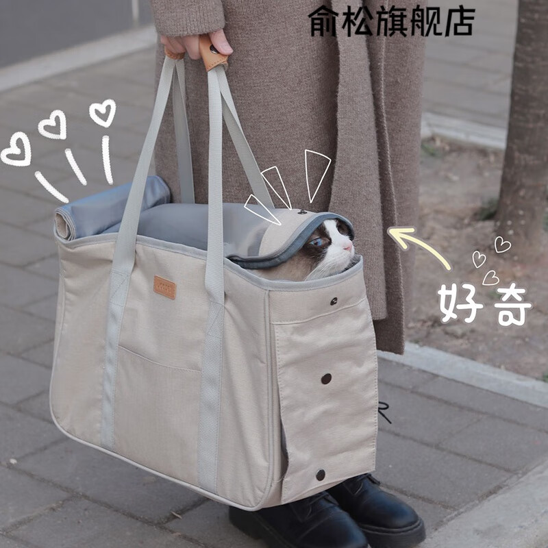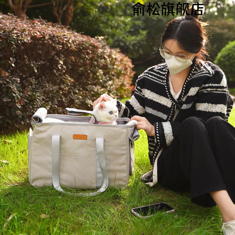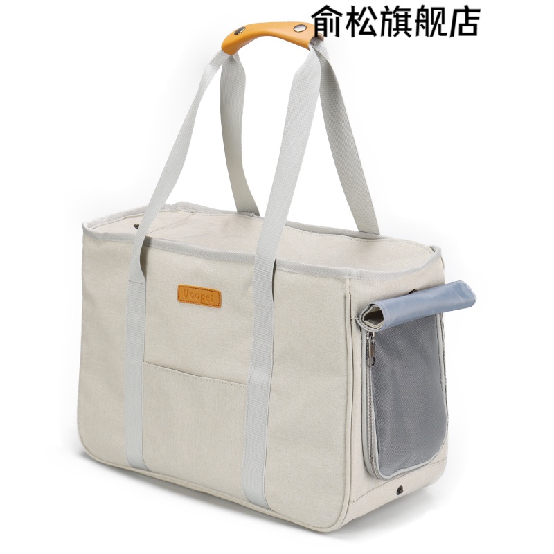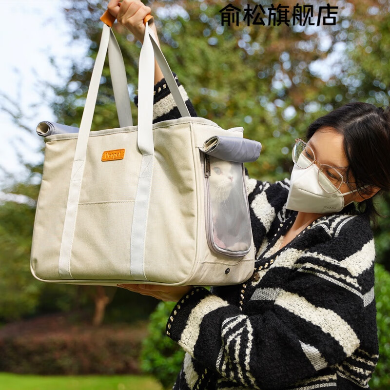 新升级带猫出门的包UOOPET猫包外出便携夏天折叠猫咪外出包单肩手提轻便帆布猫袋携带 米色-防风款 13斤内猫咪12斤内狗狗