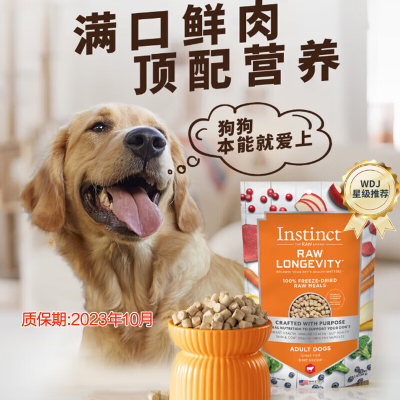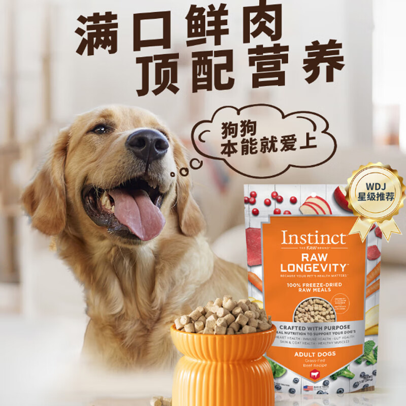 INSTINCT生鲜本能 百利冻干狗粮 冻干主食长鲜伴系列高营养进口成年犬粮 冻干主食 牛肉犬粮269g(9.5oz)