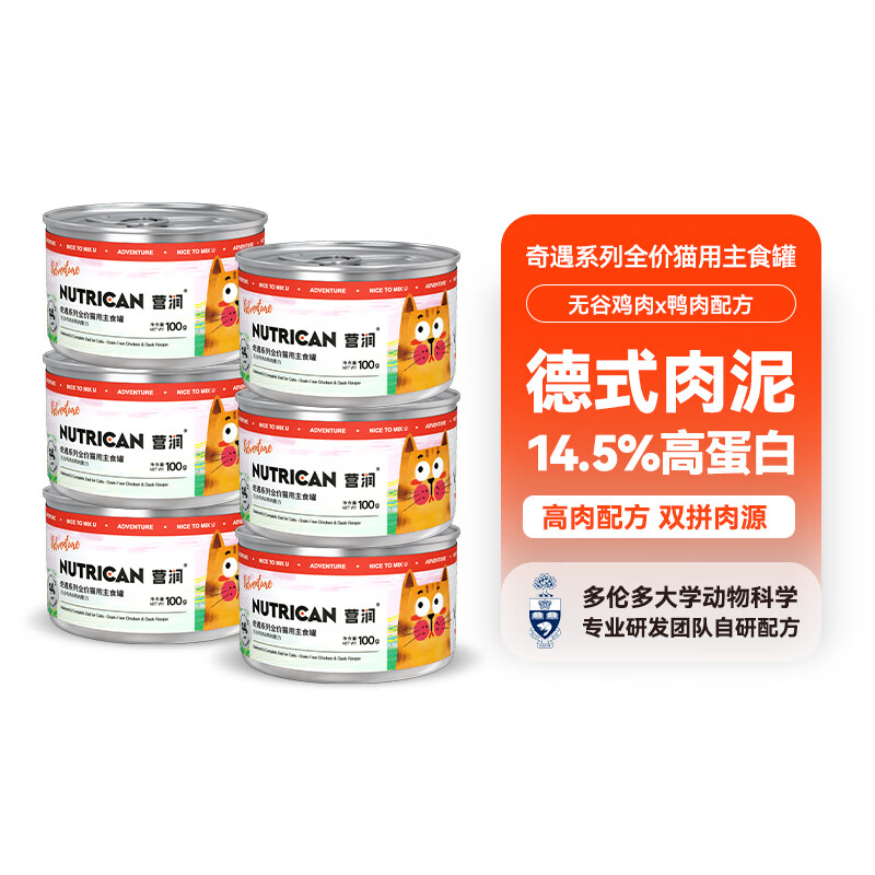 营润猫罐头 奇遇系列 全价成猫幼猫主食罐头 宠物猫咪零食湿粮100g 无谷鸡肉