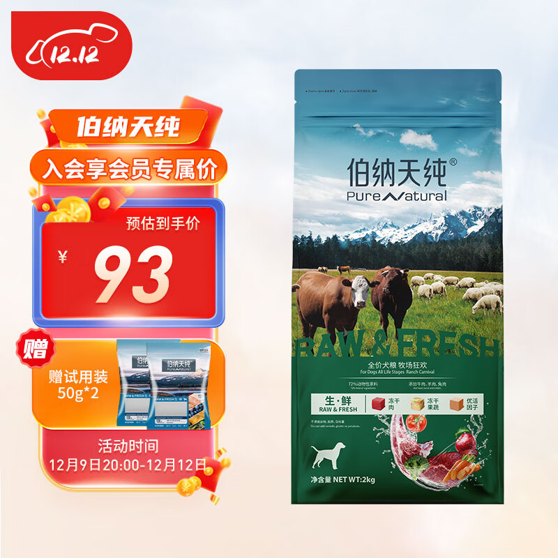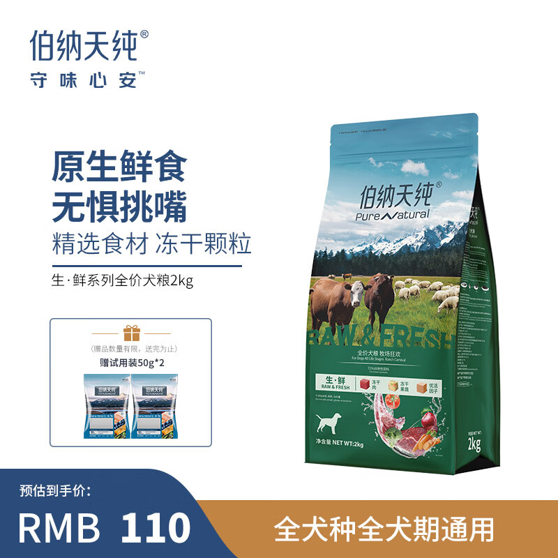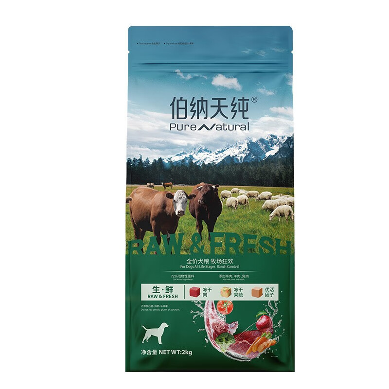 伯纳天纯冻干粮三种肉成犬幼犬中大型小型犬通用牧场狂欢狗粮牛肉羊肉兔肉 0谷物通用款三种肉2kg