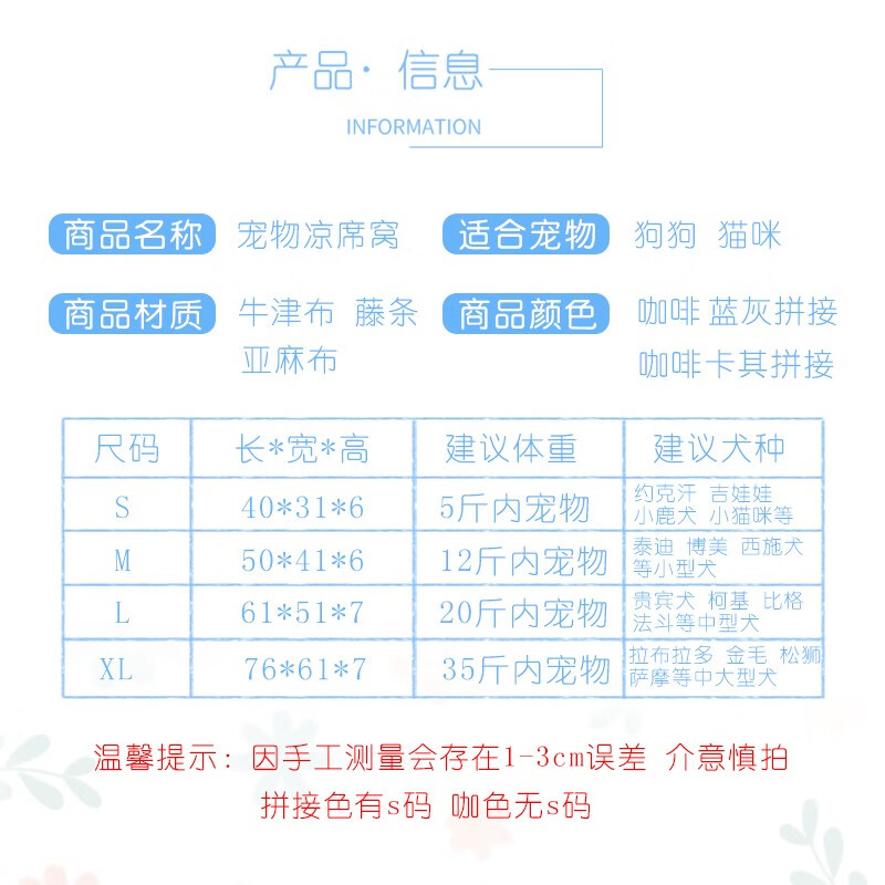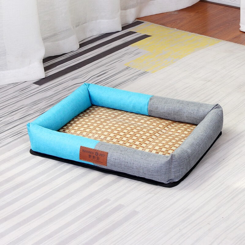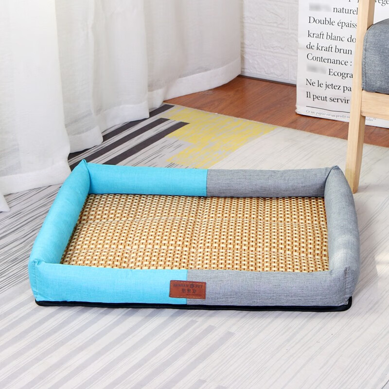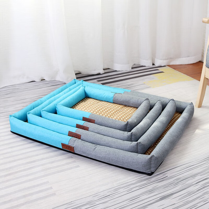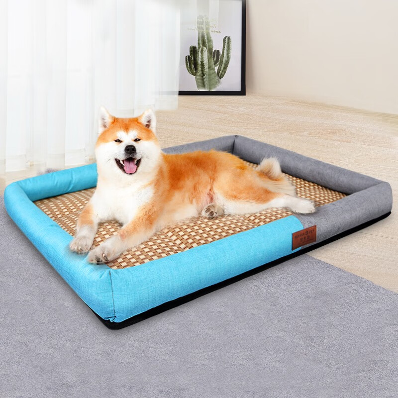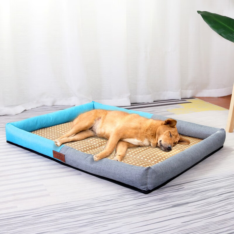 憨憨宠 狗窝猫窝 夏季宠物狗狗窝垫子凉席 金毛贵宾泰迪中型犬狗床狗垫 凉席款蓝灰拼接XL码71*61*7cm