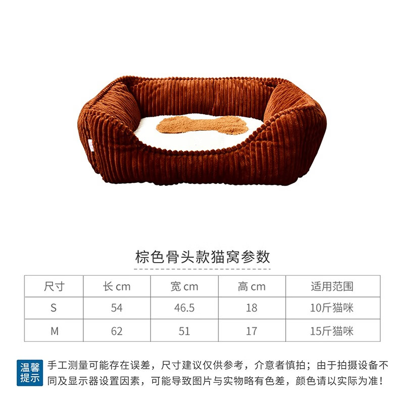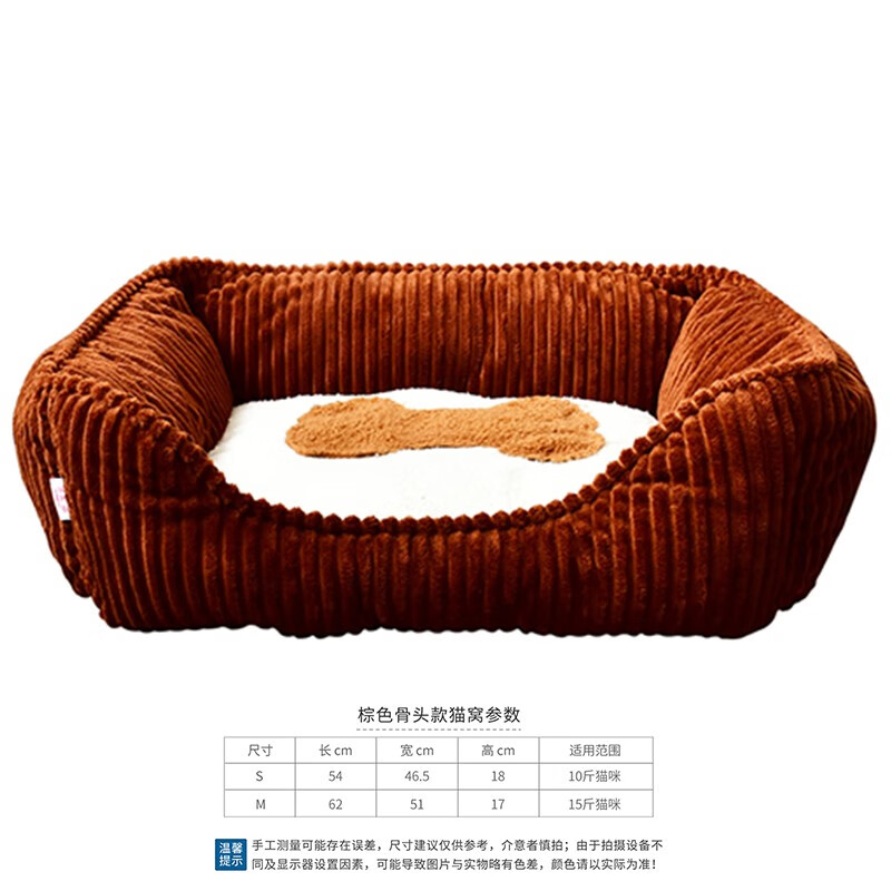 得酷(DEKU)猫窝狗窝宠物方形窝垫保暖棉垫棉窝冬季可机洗 骨头方窝 咖色 S