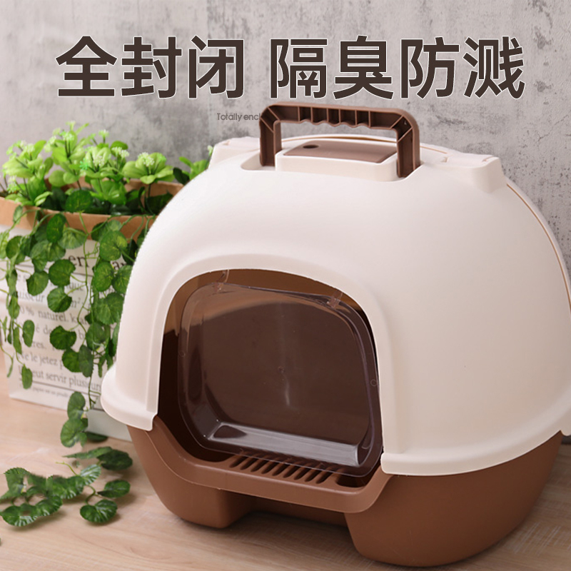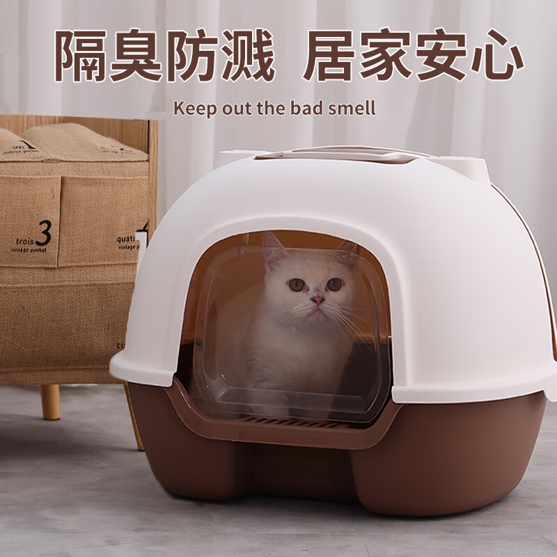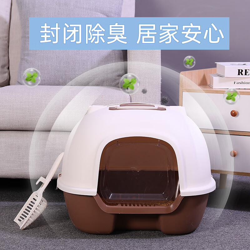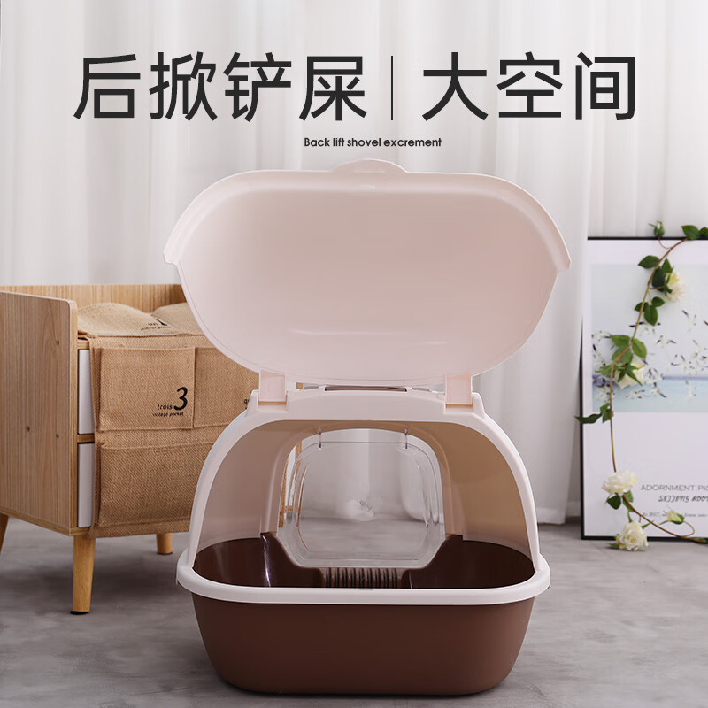 hoopet猫砂盆全封闭猫砂盆大号猫厕所特大号超大猫砂盆除臭防外溅防臭猫幼猫成猫缅因猫咪用品 后掀式(咖啡适合20斤内)