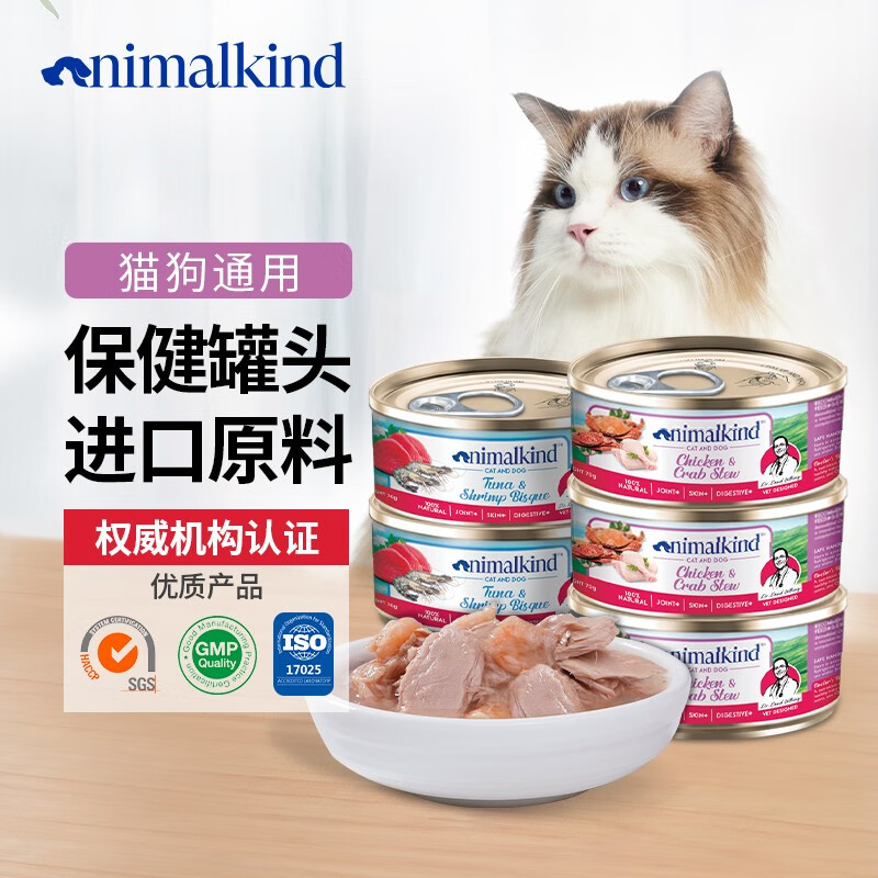 animalkind AK 猫罐头猫零食宠物零食猫咪狗通用猫湿粮营养增肥浓汤白肉罐头 金枪鱼鸡肉和南瓜海陆盛宴70g*24