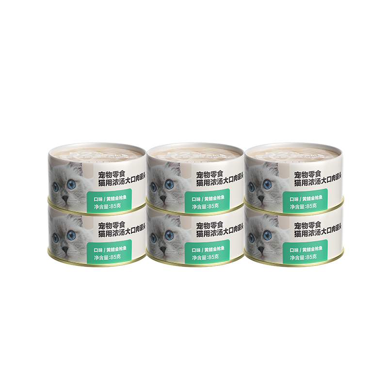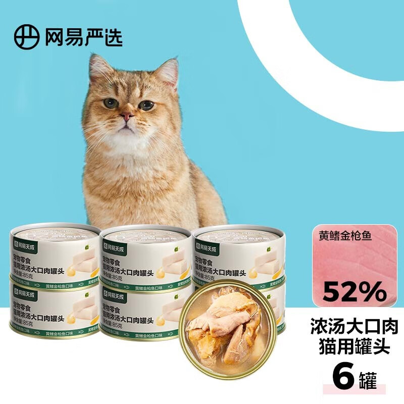 网易严选猫罐头猫湿粮宠物零食猫用浓汤大口肉罐头 黄鳍金枪鱼85g*6罐