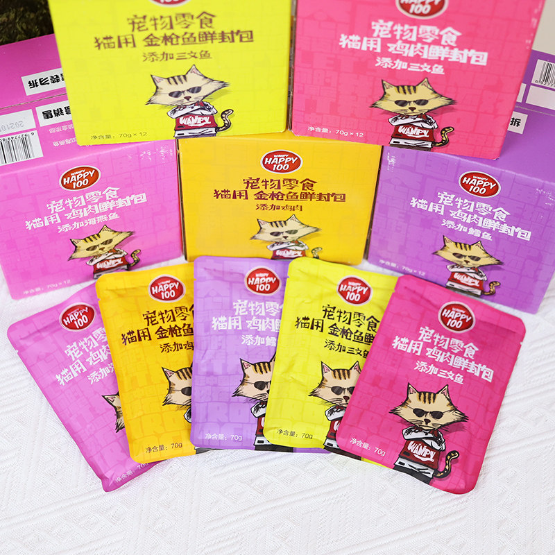 顽皮happy100猫基础鲜封包12包*70g猫咪零食营养湿粮罐头活力补水