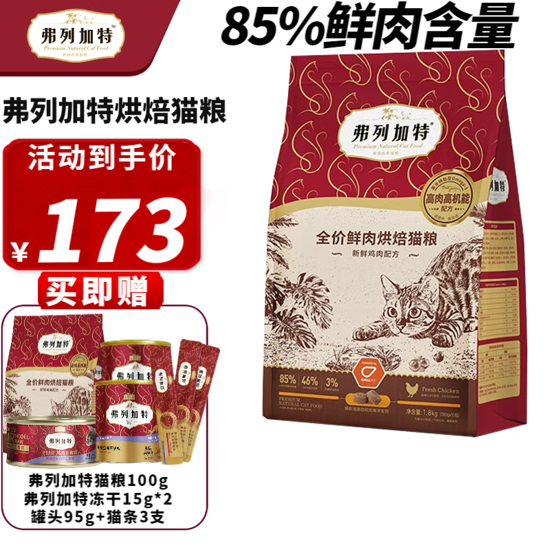 弗列加特Fregate 85%高鲜肉烘焙粮 全价鲜肉烘焙猫粮 鸡肉配方1.8kg