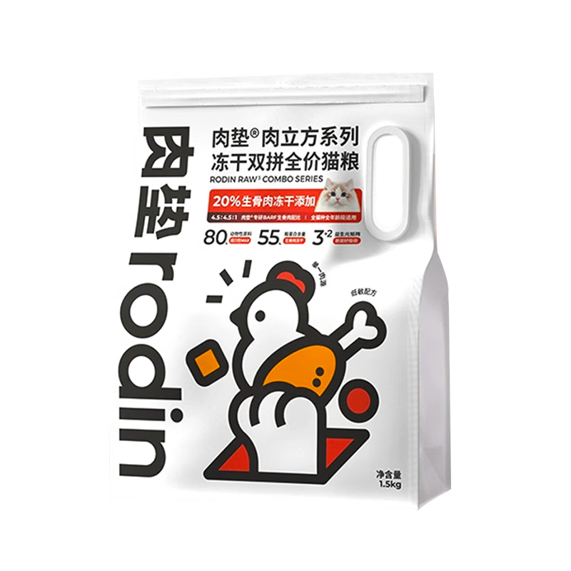 帕特肉垫rodin烘焙双拼冻干猫粮烘焙肉饼鸡肉全阶段成猫增肥发腮美毛 经典双拼冻干猫粮800g*2