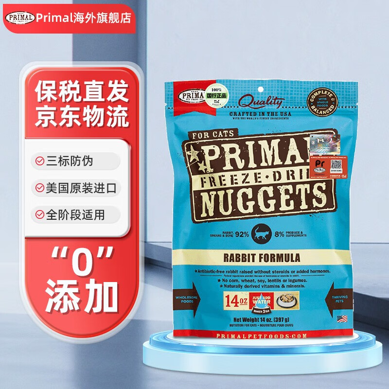 PRIMALPr猫冻干主食猫咪生骨肉成幼猫pr冻干猫粮 兔肉 397g