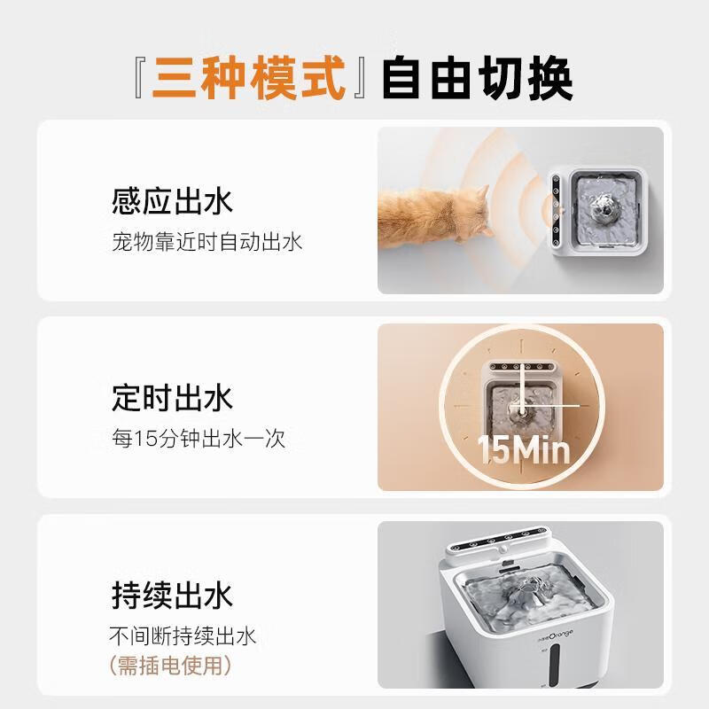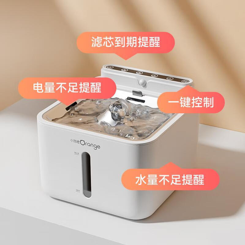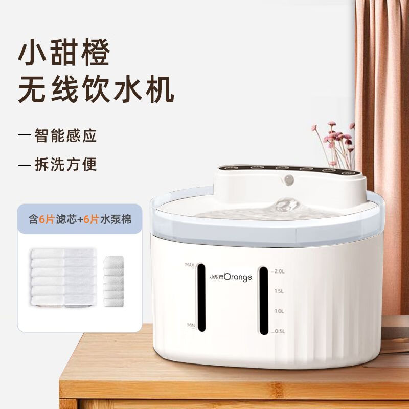 小甜橙猫咪饮水器无线感应不插电大容量恒温加热宠物通用饮水机 B07-2500 续航28天 6滤芯 6水泵棉(半年量)