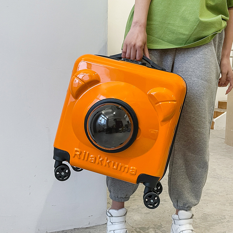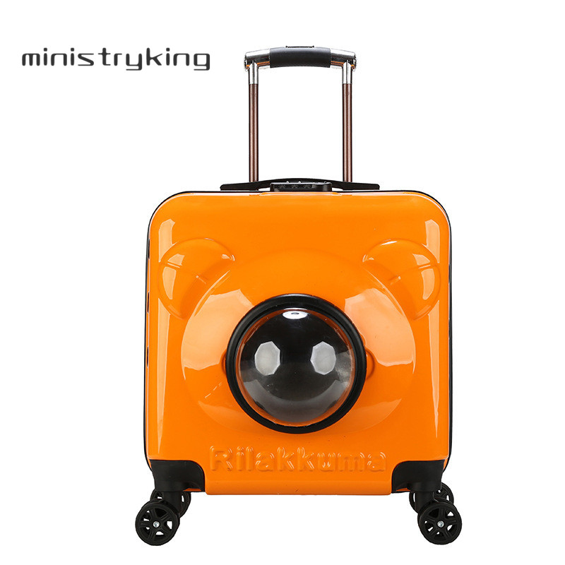【升级新款】宠物拉杆箱大号猫包外出拉杆便携大容量夏咪背包太空舱宠物包狗狗猫包行李箱 橙色 质量保障
