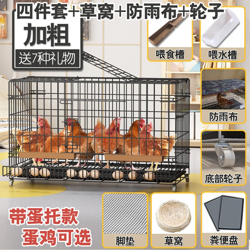 邦可臣 鸡笼子家用养鸡笼特大号自动清粪折叠养殖笼鸡舍铁丝网鸭狗笼 蛋托款套餐 草窝 防雨盖 万向轮 加粗70*50*60【适合2-3只】