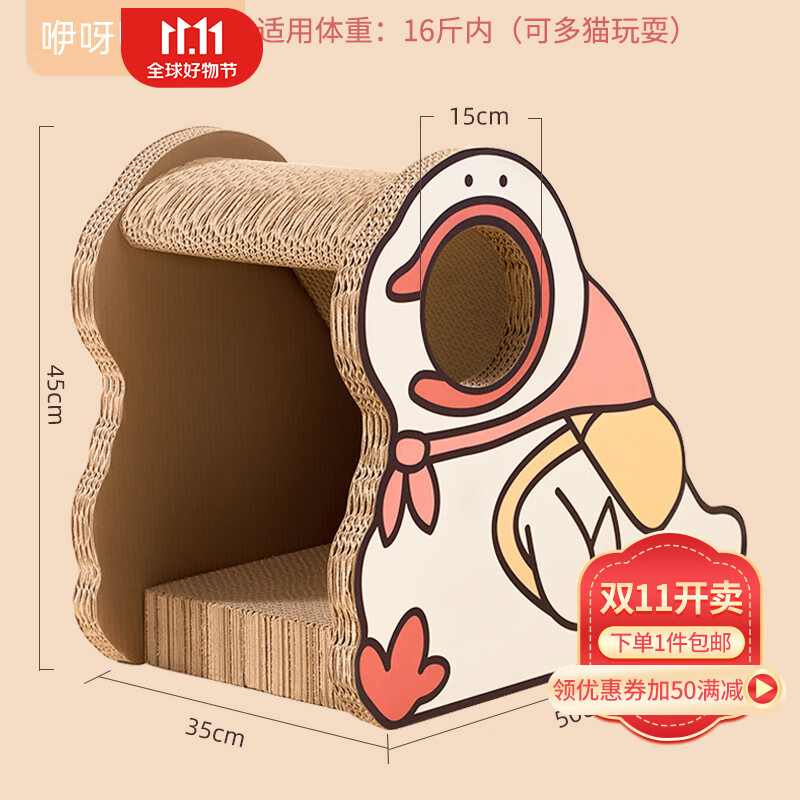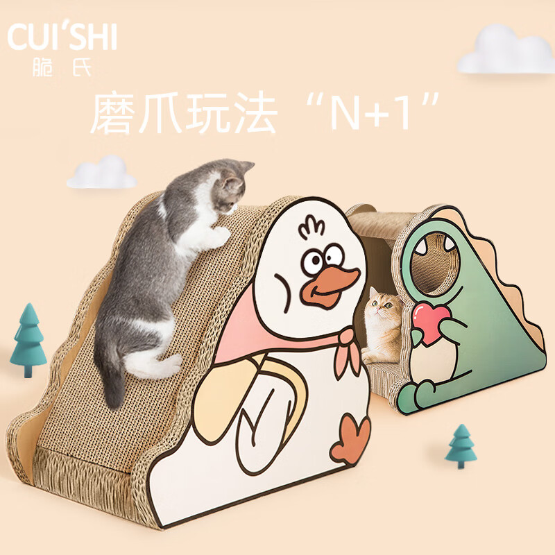 神经猫立式猫抓板窝磨爪板耐用不掉屑恐龙瓦楞纸防猫抓沙发玩具猫咪用品 咿呀鸭大号 无规格