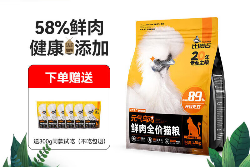 比瑞吉元气乌鸡无谷主食冻干猫粮成猫幼猫通用1.5kg 肉含量89%,鲜肉猫粮 1.5kg