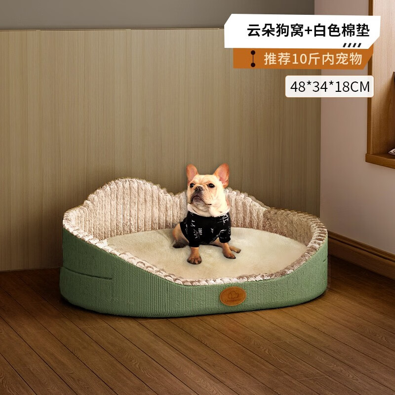 宠趣汇狗窝冬季保暖可拆洗四季通用睡觉用狗垫子耐咬秋冬天泰迪小型犬 小号浅绿色 耐咬狗窝 保暖棉垫