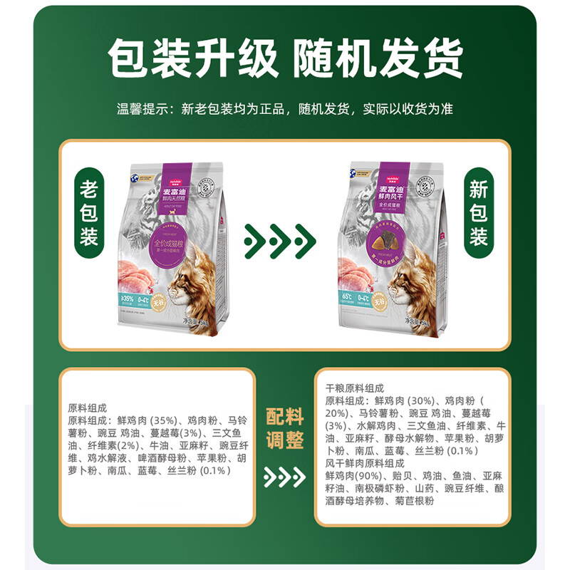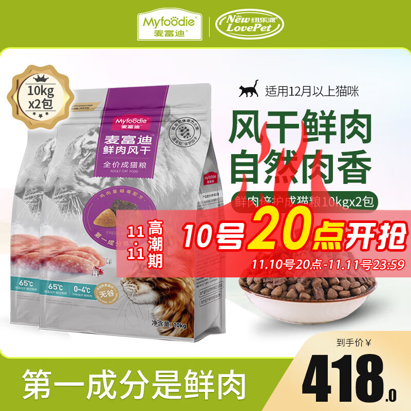麦富迪鲜肉倍护猫粮 无谷低敏风干肉粒双拼成猫通用型 全价成猫粮10kg*2包