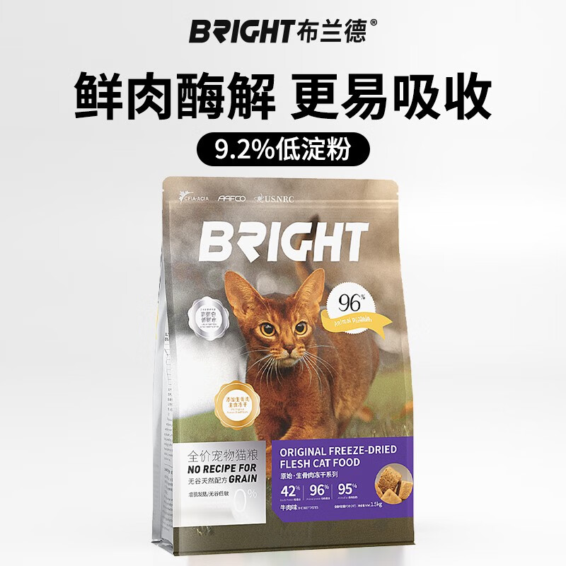 布兰德全价猫粮成猫生骨肉高蛋白低碳水增肥发腮配方无谷冻干猫粮干粮 牛肉味 1.5kg