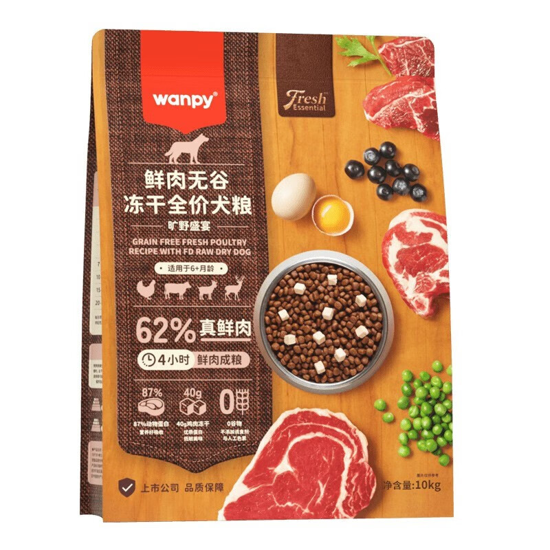 顽皮(Wanpy)无谷鲜肉冻干狗粮幼犬泰迪成犬金毛全价狗粮全期通用型犬粮 62%鲜肉旷野盛宴10kg