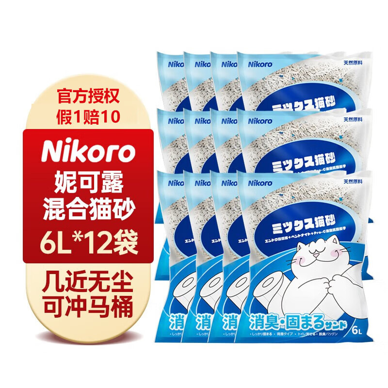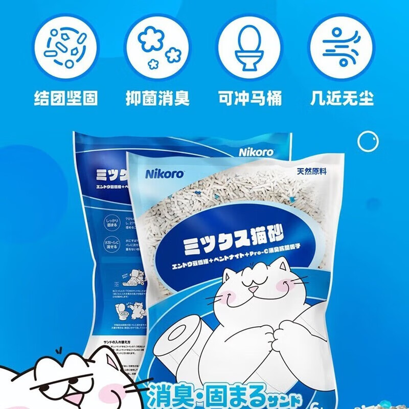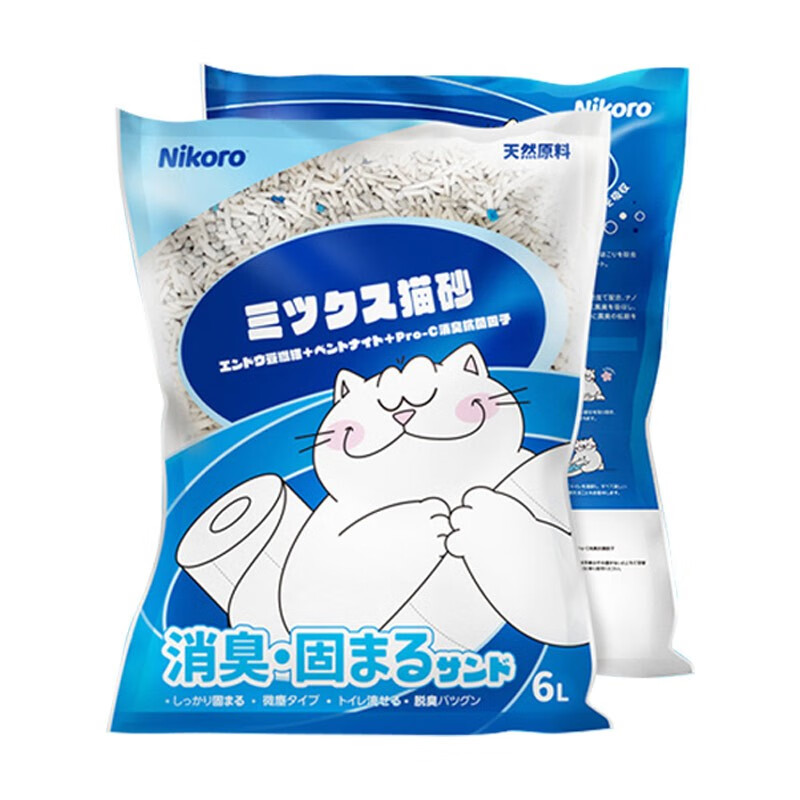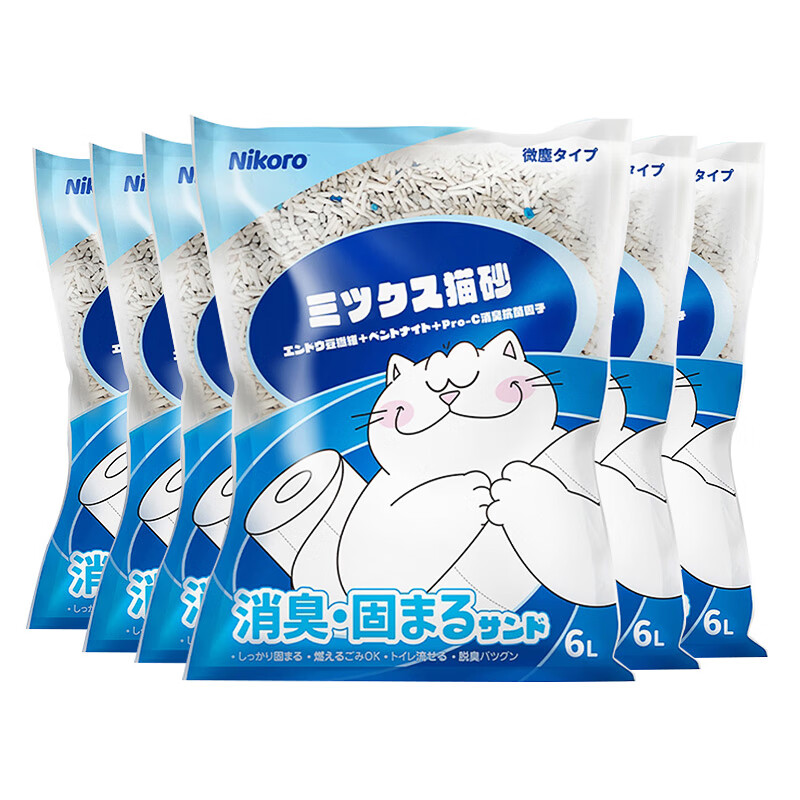 NIKORONIKORO妮可露宠物混合豆腐膨润土猫砂除臭无尘结团抑菌猫砂 【原味】混合猫砂6L*6袋