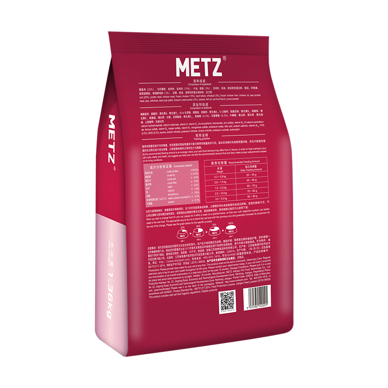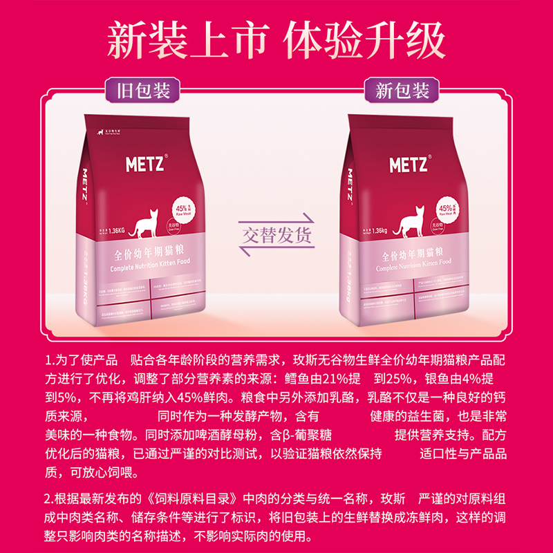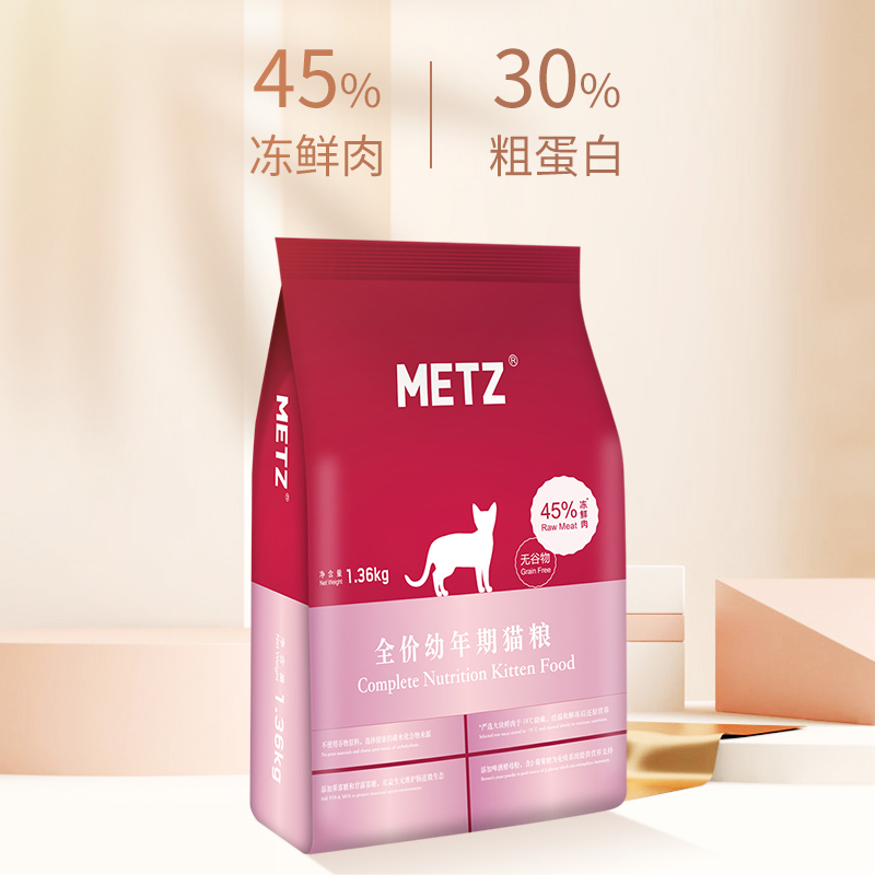 玫斯(metz)猫粮 通用型全阶段成猫幼猫无谷粮 幼猫粮1.36kg(4-12月龄)