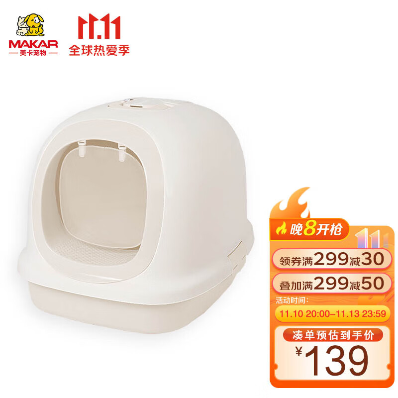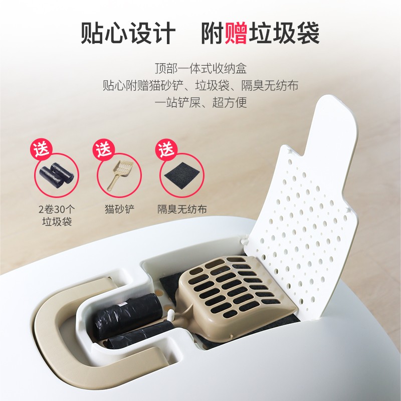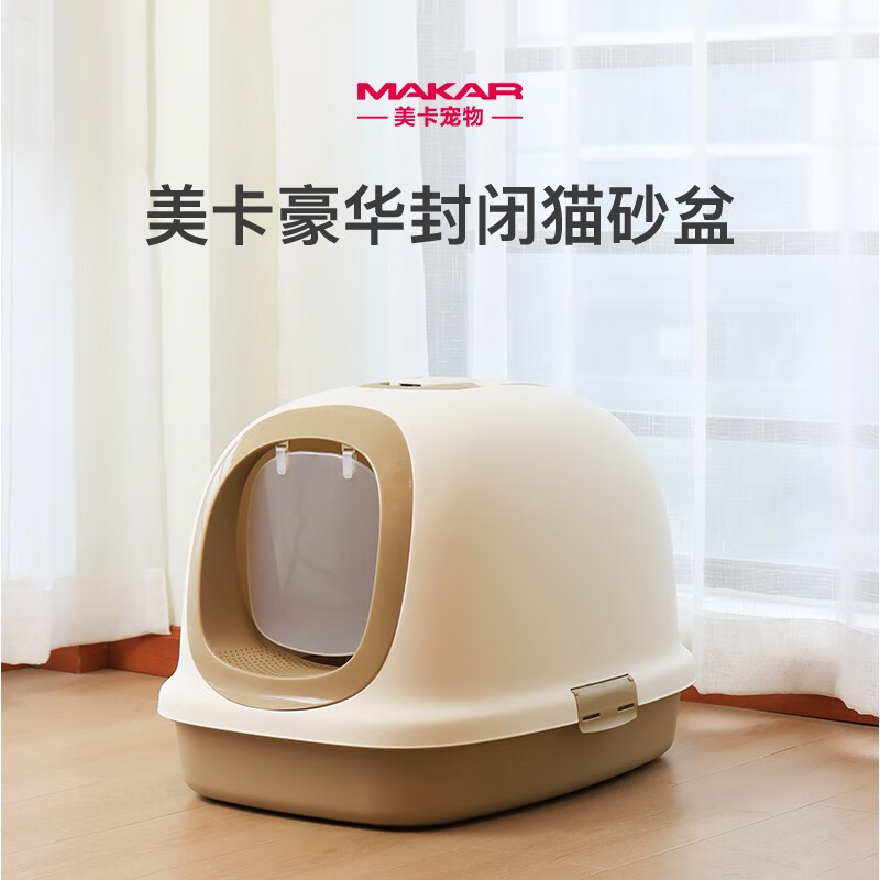 美卡 超大豪华全封闭式猫砂盆猫厕所 大号防外溅防带出猫沙拉屎盆猫咪宠物用品 奶白色