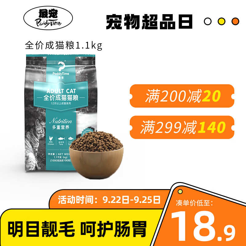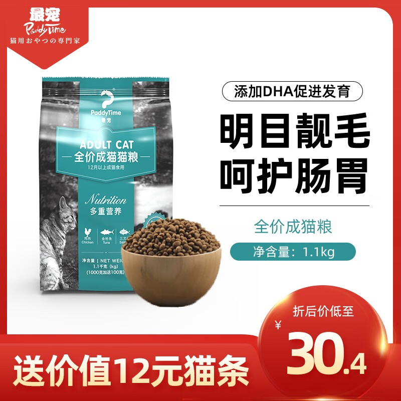 澳洲品牌 最宠(Paddy Time)猫粮成猫全价通用猫粮10kg营养天然配方英短蓝猫猫粮宠物猫干粮 全价成猫粮1.1kg