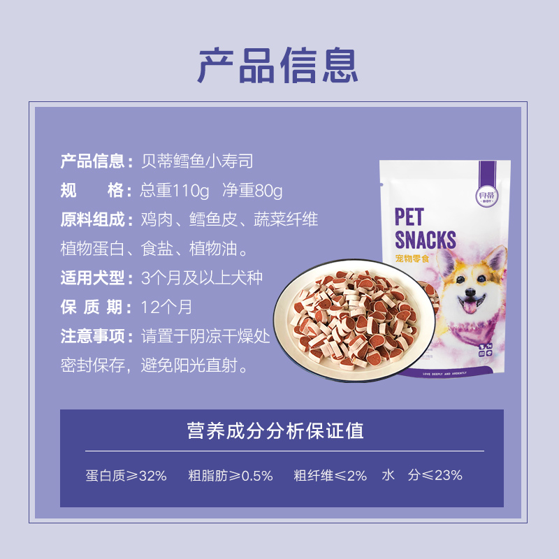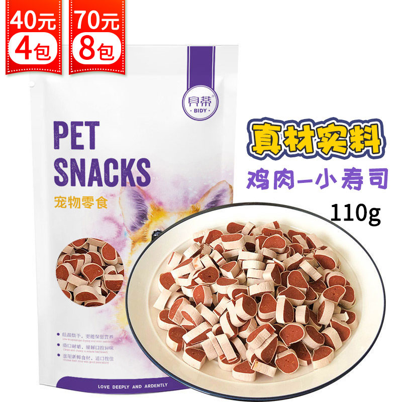 贝蒂狗狗零食宠物磨牙棒洁齿鸡胸肉干训练训犬狗零食泰迪金毛大中小型犬宠物食品 【鸡肉-小寿司】110个g