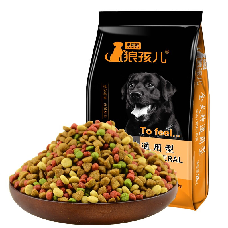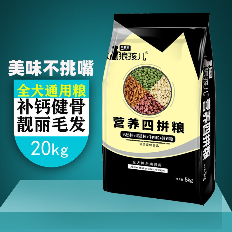 狼孩儿狗粮20kg40斤成犬幼犬老年犬金毛拉布拉多中型大型犬通用型天然粮 20kg牛肉四拼粮(40斤装)