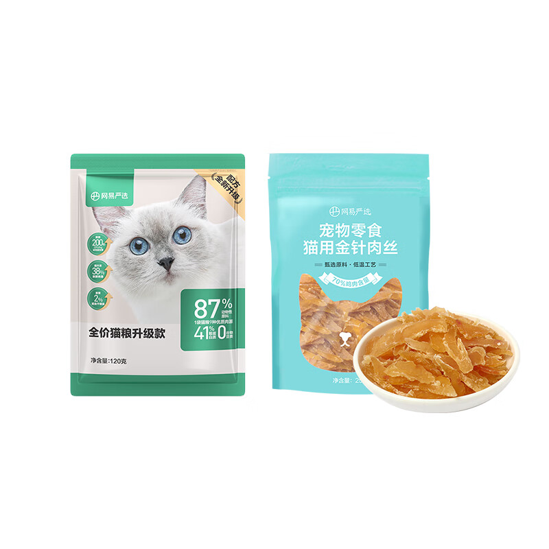 网易严选【U先专享】全价猫粮试吃装120克 金针软丝25克 全价猫粮120克 鸡肉金针软丝25克 120g