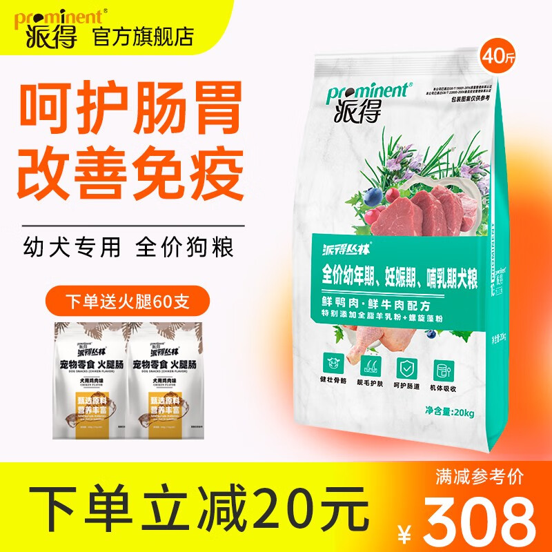 派得(prominent)狗粮 鲜肉配方金毛狗粮拉布拉多哈士奇马犬 大中小型犬通用 幼犬粮20kg40斤