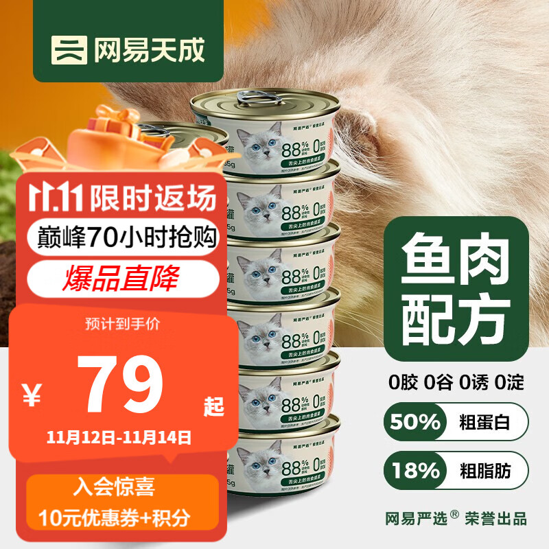 网易天成宠物猫罐头全价猫用主食罐猫粮猫湿粮美味好吸收成猫幼猫主食 三文鱼罐85g*12罐