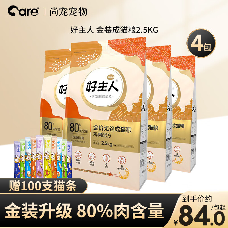 好主人(CARE)猫粮2.5kg 成猫猫粮幼猫猫粮金装全价冻干猫粮无谷粮猫干粮猫主粮 【金装升级】成猫粮 2.5kg*4包