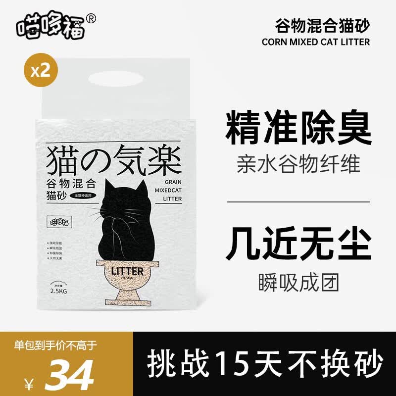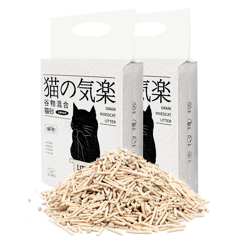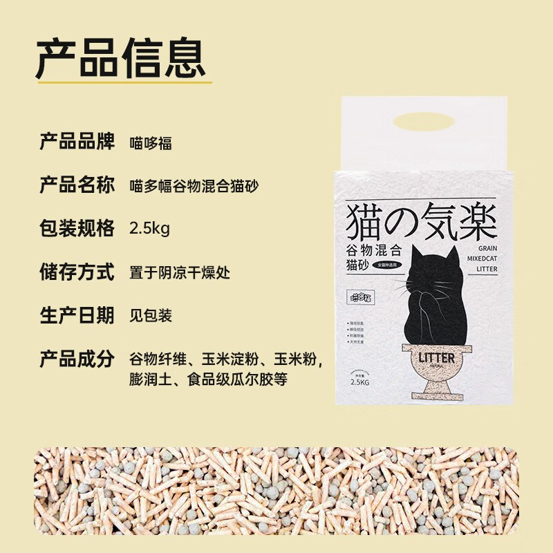 喵哆福谷物混合猫砂除臭膨润土不沾底易结团无尘可冲厕所成幼猫咪用品 【复购】谷物混合2.5kg*2