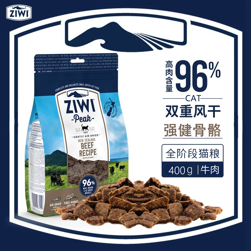 滋益巅峰(ZIWI)风干牛肉鸡肉马鲛鱼羊肉味猫粮加菲美短幼猫成猫全阶段猫咪主粮 巅峰风干牛肉猫粮400g