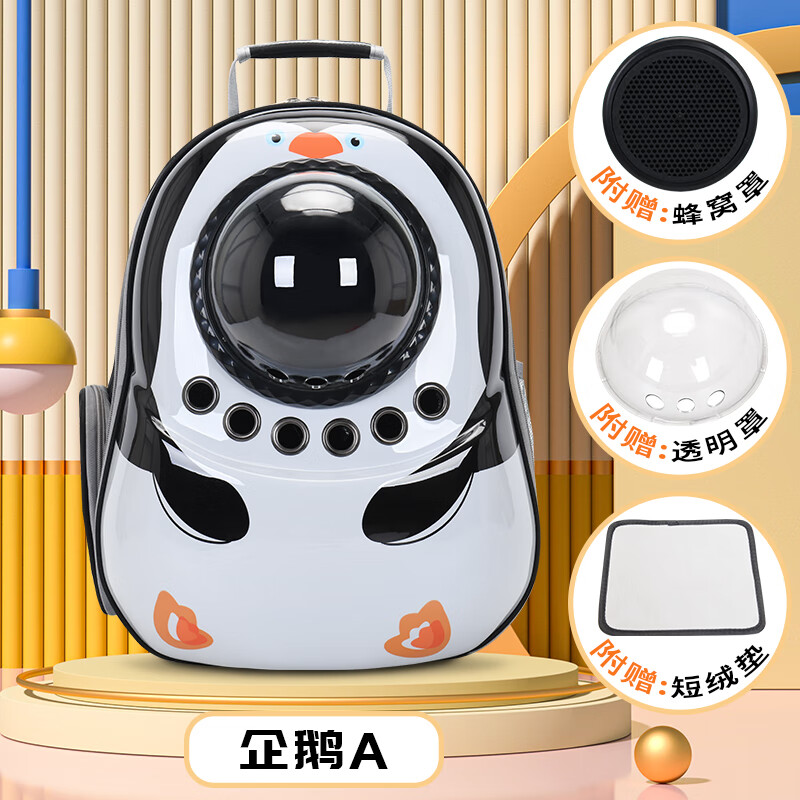 搭啵兔 猫包外出便携包透明太空舱双肩猫咪背包猫书包大容量狗包宠物用品 15孔企鹅(侧门款) 标配四件套
