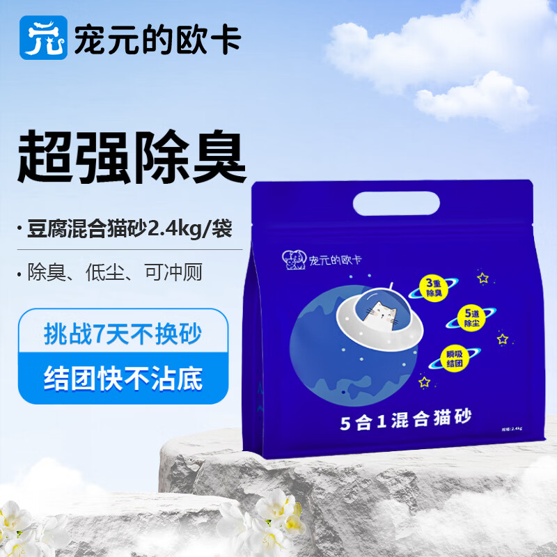 宠元的欧卡豆腐猫砂混合5合1膨润土除臭低尘活性碳砂猫狗砂全时期通用厕所砂 【升级款奶香型】2.4kg/箱