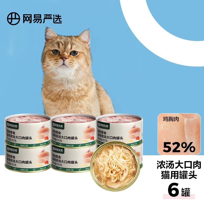 网易严选猫罐头猫湿粮宠物零食猫用浓汤大口肉罐头 鸡肉85g*6罐