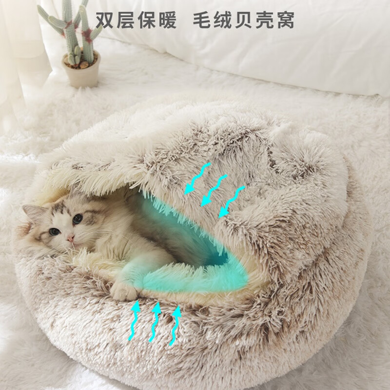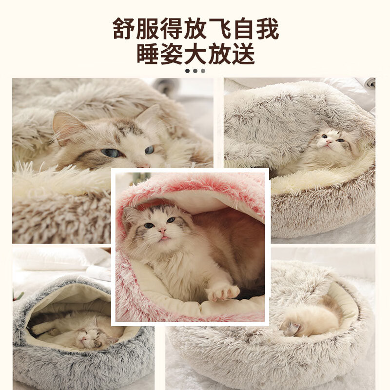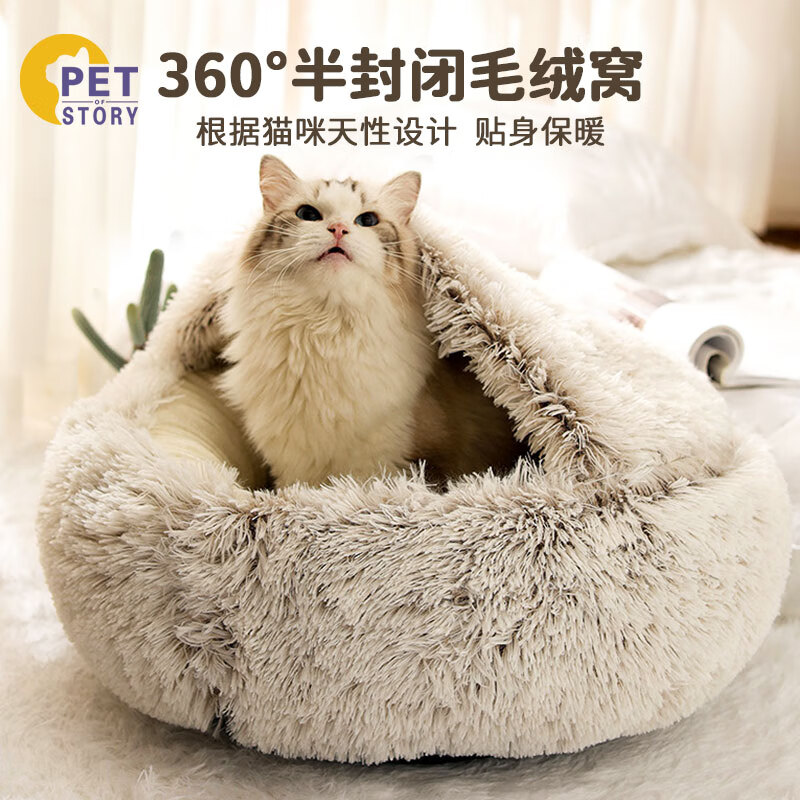 petofstory 两用猫窝狗窝冬季半封闭式保暖垫子大小猫窝狗床猫床猫用品 大号50cm