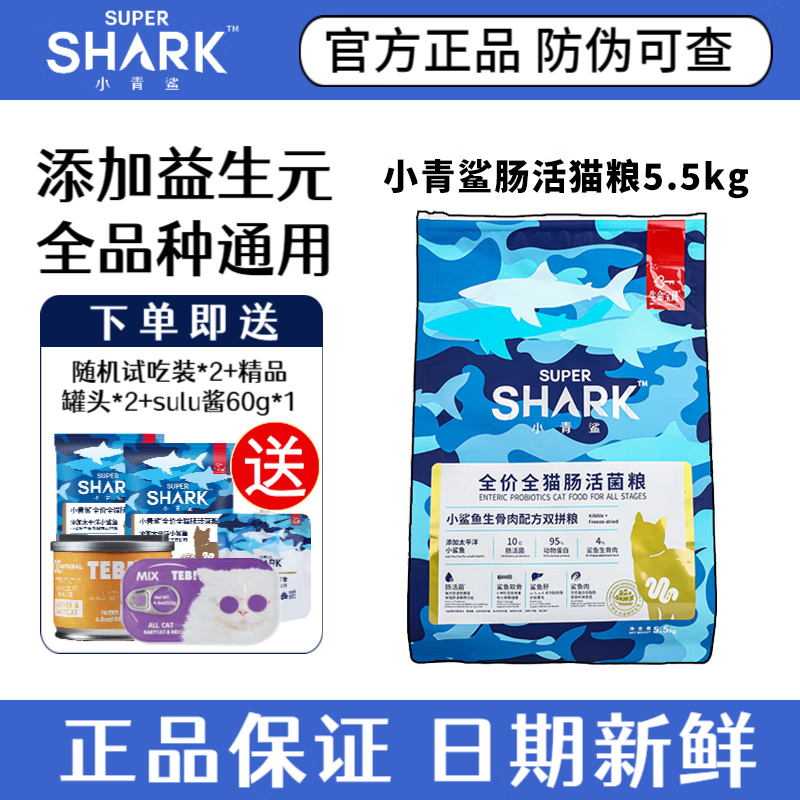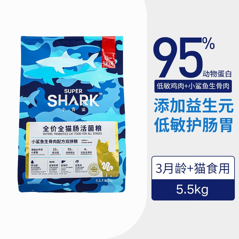 小青鲨猫粮【现货立发】冻干猫粮无谷物鱼肉营养英短布偶折耳猫猫粮 全价全猫肠活菌粮5.5kg