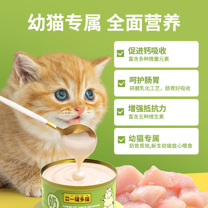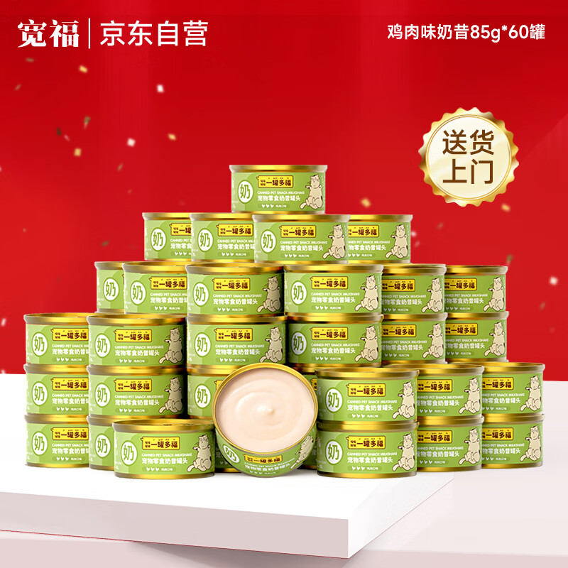宽福(KUANFU)猫罐头奶昔预售鸡肉味85g*12罐*5件【含附件共60罐】