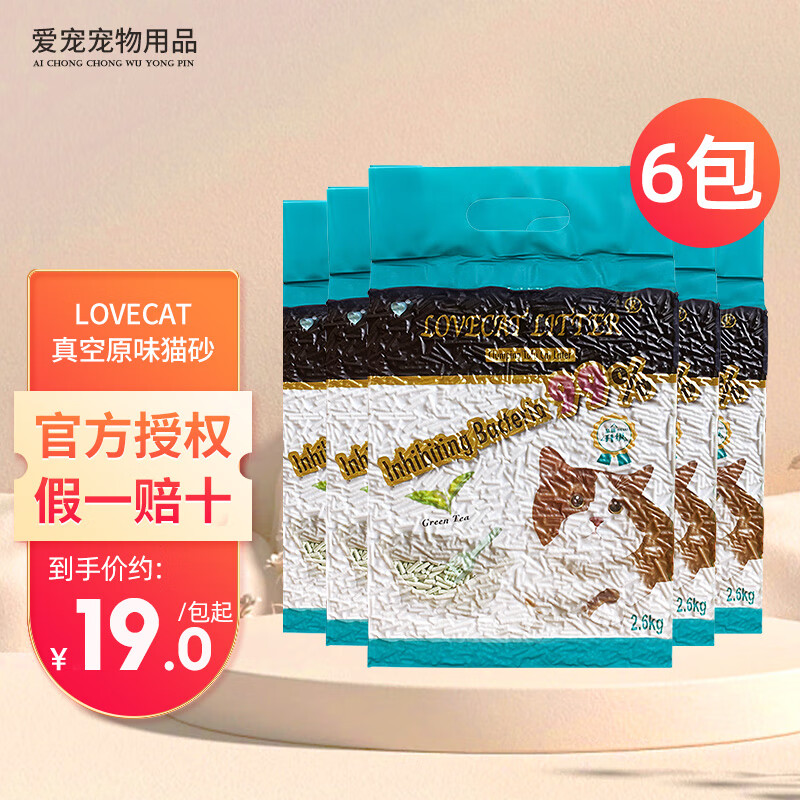 爱宠爱猫猫砂 love cat猫砂豆腐猫砂原味绿茶植物猫砂除臭易结团可冲马桶 【新款】绿茶豆腐猫砂 5.2斤*6包