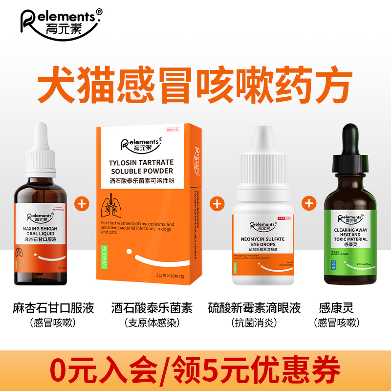 育元素狗狗泰乐菌素猫用宠物支原体衣原体感染急性肠胃炎咳嗽喷嚏鼻涕猫鼻支 感冒咳嗽药方狗用