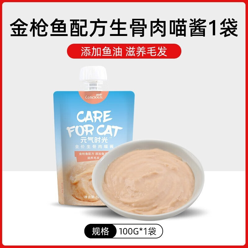 路斯猫咪零食全价生骨肉喵酱100g布偶成幼猫 营养咕噜酱猫零食 【滋养毛发】金枪鱼配方1包