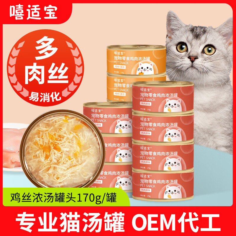 嘻适宝猫罐头鸡肉浓汤罐猫咪宠物营养补水170g幼猫增肥主食罐批发 鸡肉原味 两罐装