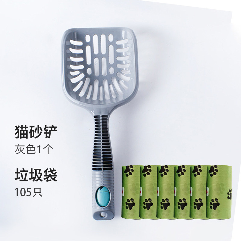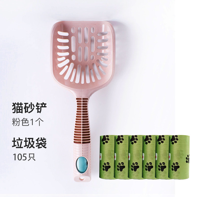 宠物一体式猫砂铲加厚长柄加长版大号自带垃圾袋猫咪铲屎套装神器