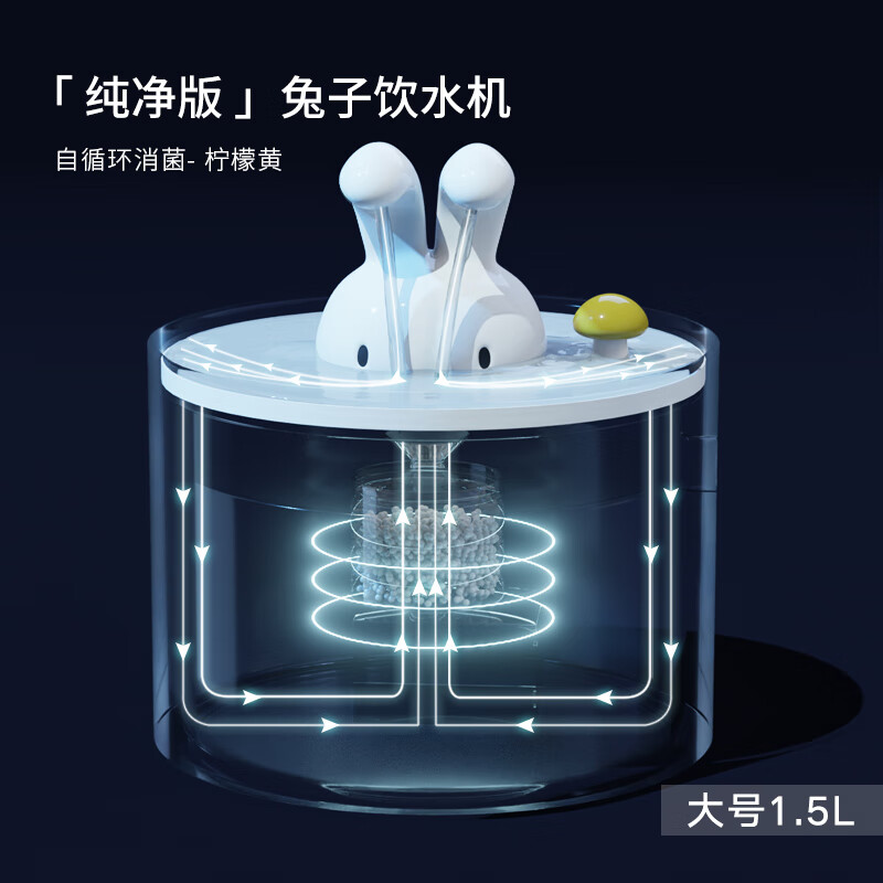 猫咪陶瓷饮水机自动循环流动喝水不湿嘴宠物饮水器狗狗水盆猫用品 纯净版兔子饮水机大号1.5L(自循环消菌 白黄)