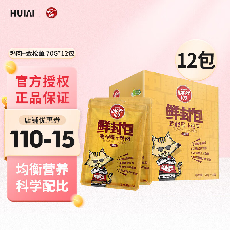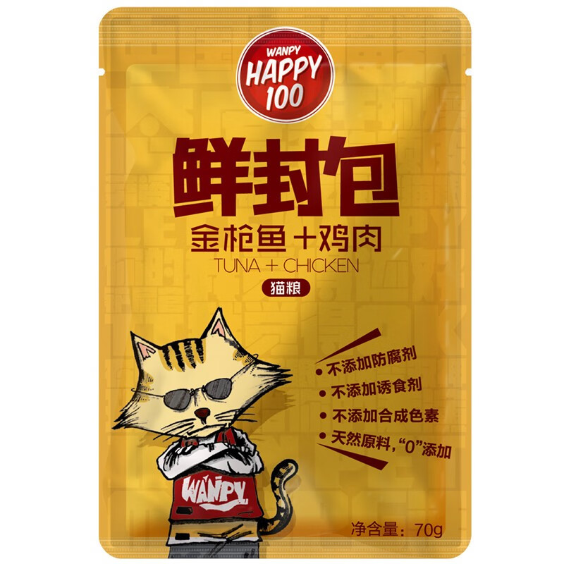wanpy顽皮猫零食鲜封包12包猫湿粮金枪鱼肉鸡肉罐头妙鲜包 鸡肉 金枪鱼70g*12袋