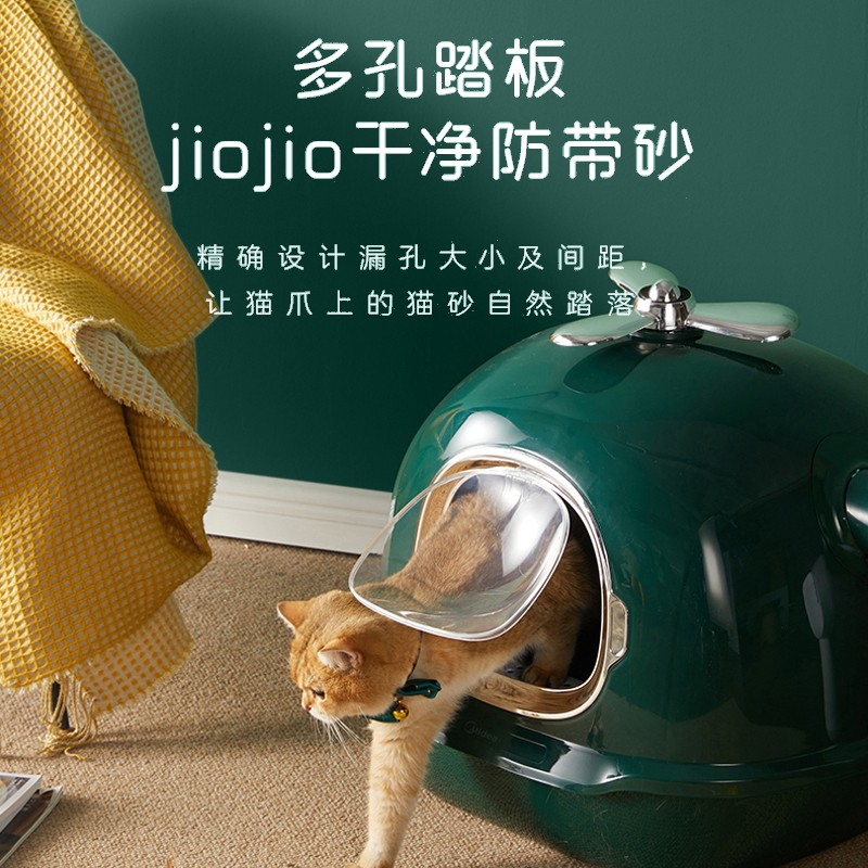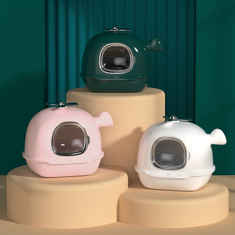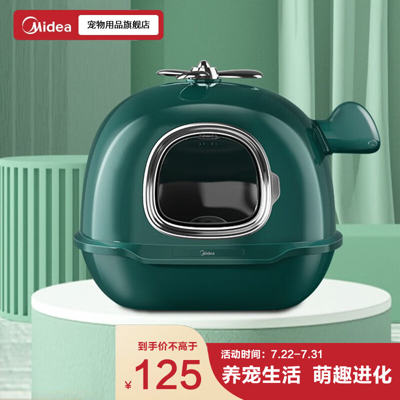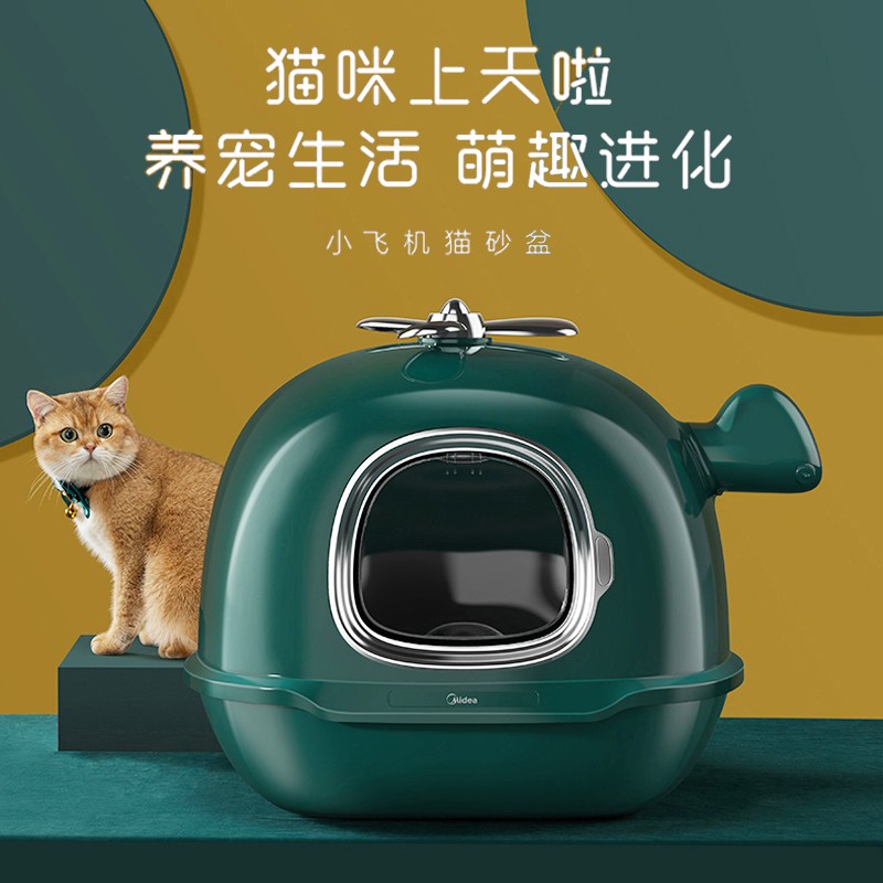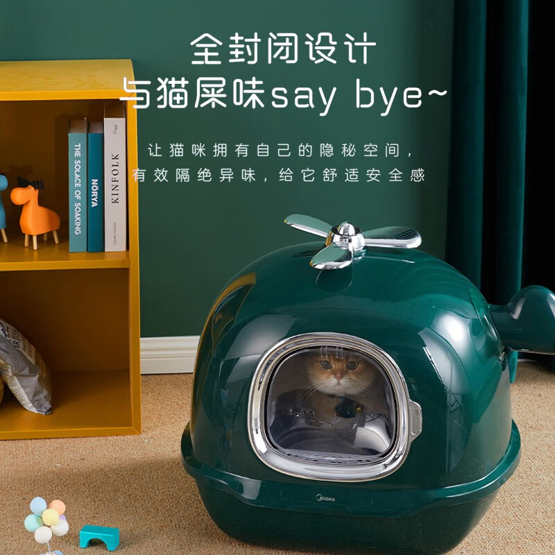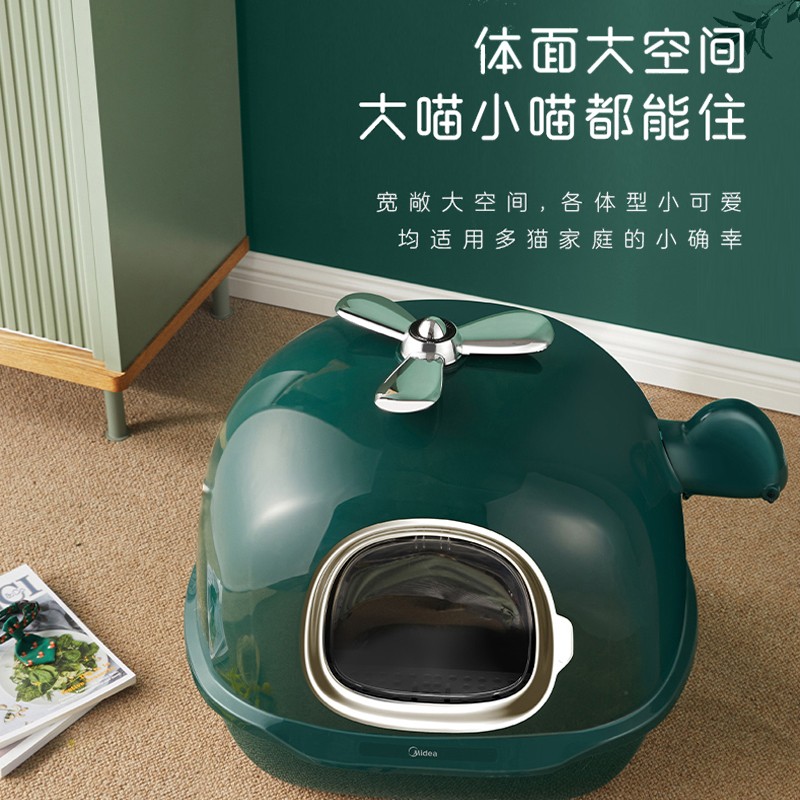 美的 全封闭式宠物猫砂盆猫厕所大号防外溅猫沙拉屎盆猫咪用品森墨绿