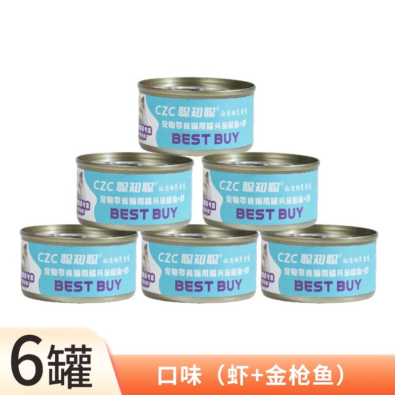 聪知聪猫罐头鲜封全阶段猫罐增肥发腮补充营养猫咪零食妙鲜猫湿粮补水靓 【补钙美毛】金枪鱼 虾85g*6罐 1盒